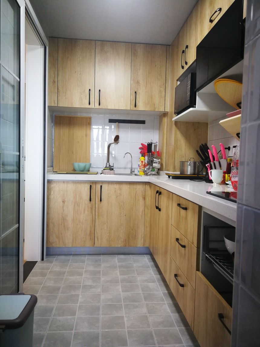 設(shè)計(jì)思路戶型是比較好的靜動(dòng)分區(qū)合理。每個(gè)空間光線都特別的好,因?yàn)榭蛻舻男枨螅紤]把原來(lái)的廚房中廚的位置改成了小臥室。把原來(lái)廚房的門封好,西邊距離600位置重新開門洞。廚房改成L形,比原來(lái)空間大了。預(yù)留一個(gè)1米3多鞋柜,空間更好使用。廚房陽(yáng)臺(tái)改成洗衣房,放兩個(gè)洗衣機(jī)完全沒問(wèn)題,客戶的需求完全達(dá)成了。