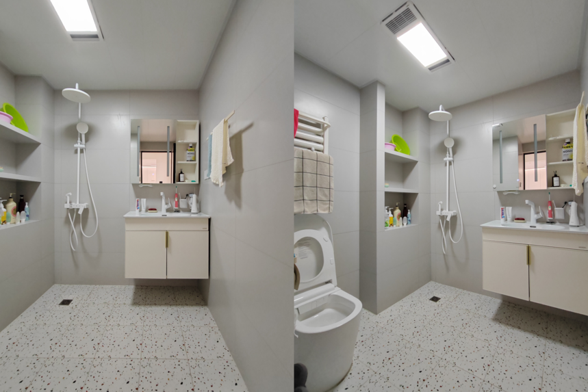 借用包管做壁龕,洗浴時(shí)更方便,壁龕做了坡度處理,不易積水。